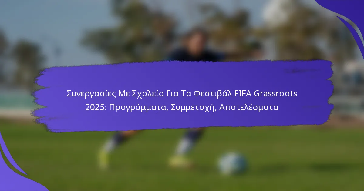 Οι συνεργασίες με τα σχολεία για τα Φεστιβάλ Grassroots της FIFA στοχεύουν στην ενίσχυση της εμπλοκής των μαθητών, στη βελτίωση της φυσικής υγείας και στην προώθηση της συνοχής της κοινότητας. Αυτές οι συνεργασίες δημιουργούν ευκαιρίες για τους μαθητές να αναπτύξουν διαρκείς δεξιότητες, ενώ αυξάνουν την ορατότητα των σχολείων και παρέχουν πρόσβαση σε πολύτιμους πόρους.