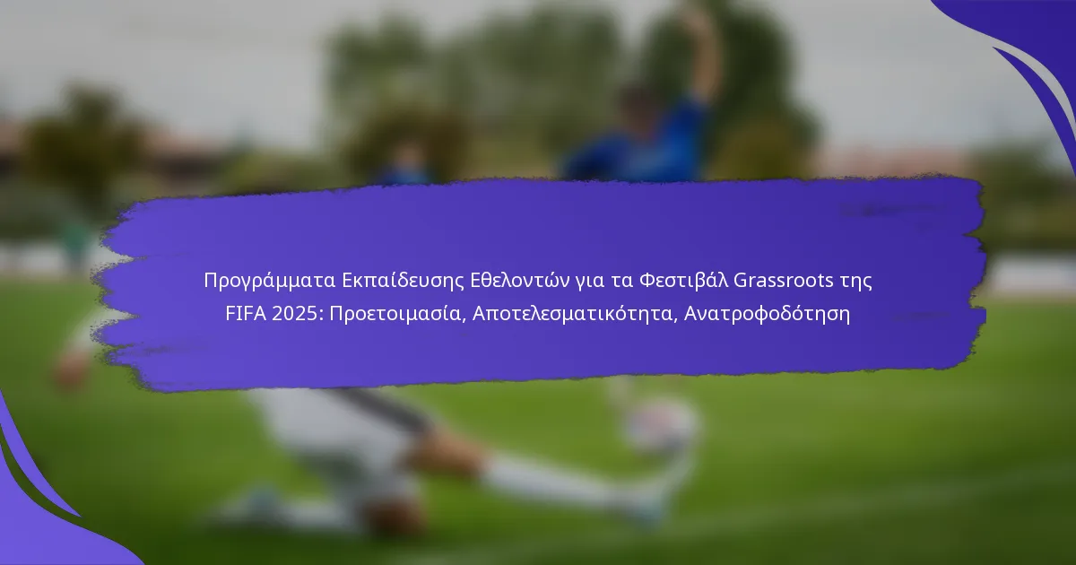 Τα προγράμματα εκπαίδευσης εθελοντών για τα FIFA Grassroots Festivals 2025 έχουν σχεδιαστεί για να εξοπλίσουν τους συμμετέχοντες με τις απαραίτητες δεξιότητες και γνώσεις ώστε να ενισχύσουν την αποτελεσματικότητά τους στην υποστήριξη των δραστηριοτήτων του φεστιβάλ. Εστιάζοντας στην προετοιμασία, την κατανόηση των ευθυνών και την προώθηση μιας θετικής νοοτροπίας, αυτά τα προγράμματα διασφαλίζουν ότι οι εθελοντές είναι καλά προετοιμασμένοι να συμβάλλουν σε μια επιτυχημένη εμπειρία φεστιβάλ. Η αξιολόγηση της αποτελεσματικότητας αυτών των εκπαιδευτικών πρωτοβουλιών είναι κρίσιμη για την κατανόηση της απόδοσης των εθελοντών και τη βελτίωση των μελλοντικών προγραμμάτων.
